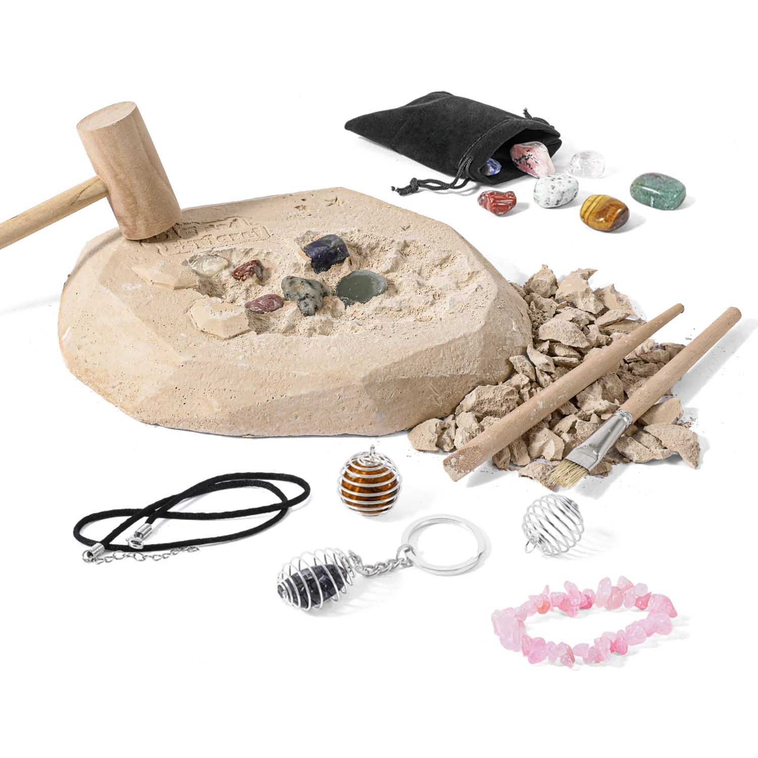 Wykopaliska – Skamielina z 12 klejnotami i akcesoriami na biżuterię. Zestaw rozwijający ciekawość i motorykę. Duży zestaw!